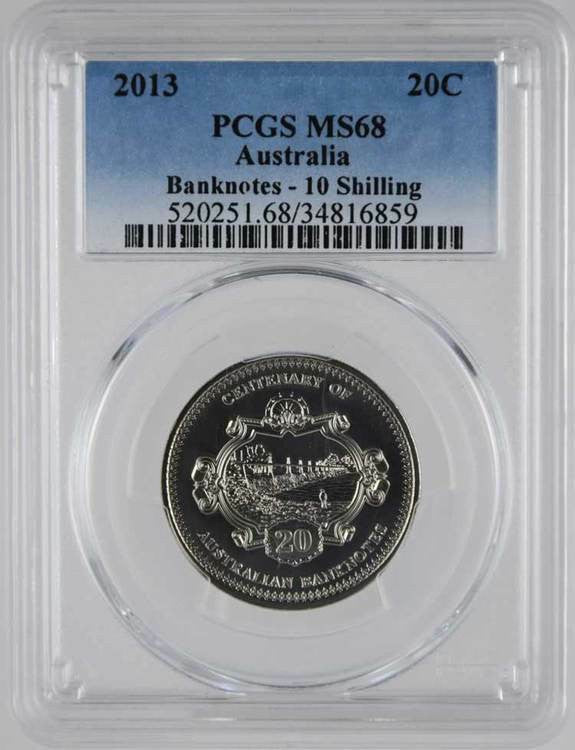 2013 Australia 20C Banknotes 10 Shilling PCGS Graded MS68 Superb Gem