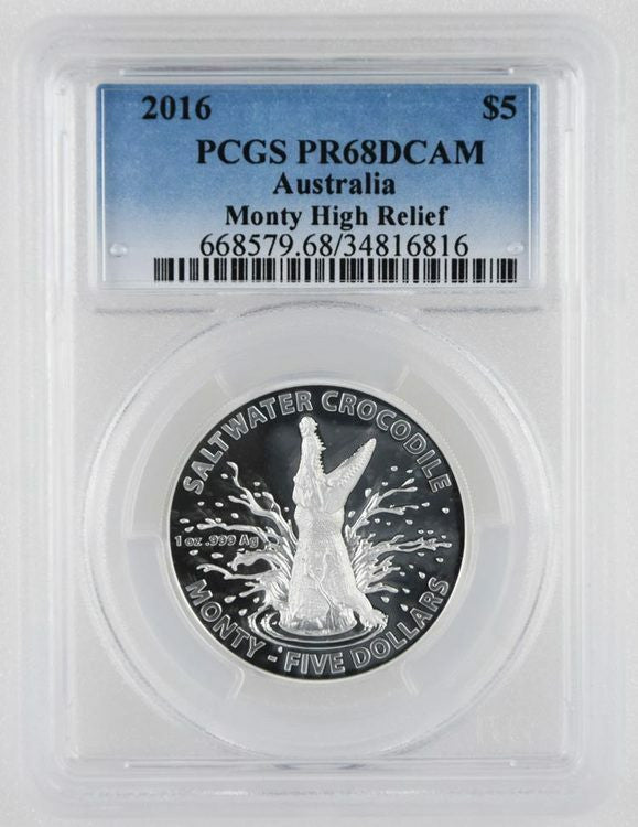 2016 Proof $5 Monty Silver High Relief PCGS Graded PR68 DCAM