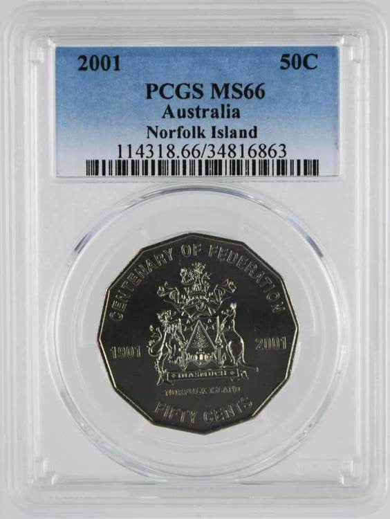 2001 Australia Fifty Cents Norfolk Island PCGS Graded MS66 Gem UNC