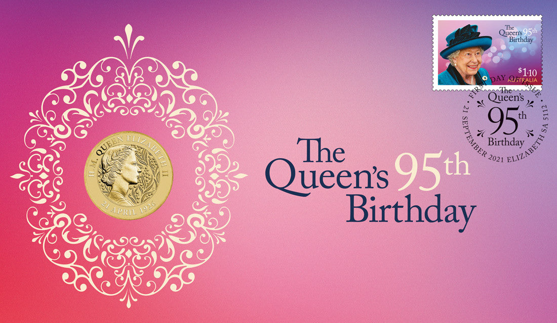 The Perth Mint and Australia Post are pleased to present this stamp and coin cover which celebrates the 95th birthday of Her Majesty Queen Elizabeth II.