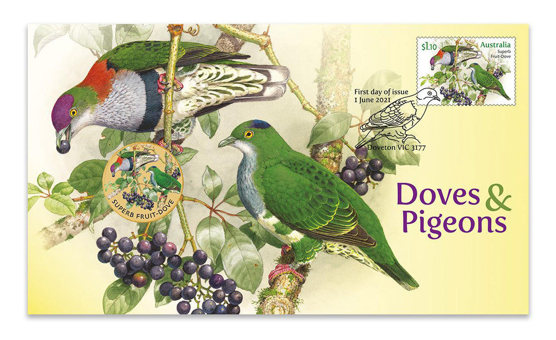 The Perth Mint and Australia Post are pleased to present this Superb Fruit-dove stamp and coin cover.
