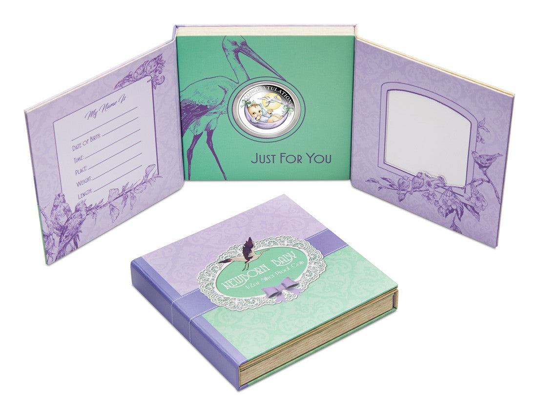 The coin’s reverse features a newborn in a baby carrying sling, with a flying stork and the moon in the background. The inscription ‘CONGRATULATIONS’ and The Perth Mint’s traditional ‘P’ mintmark are also included in the design.