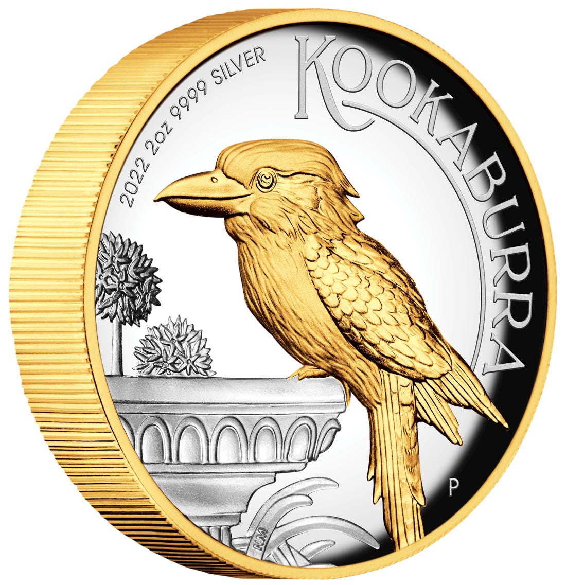 The coin’s design depicts a representation of a kookaburra perched on an ornamental bird bath among Agapanthus, flowering plants regularly seen in Australian gardens. The bird and outer ring of the coin are gilded in 24- carat gold. The reverse also includes the inscription ‘KOOKABURRA’, The Perth Mint’s ‘P’ mintmark, the coin’s weight, purity and 2022 year-date.