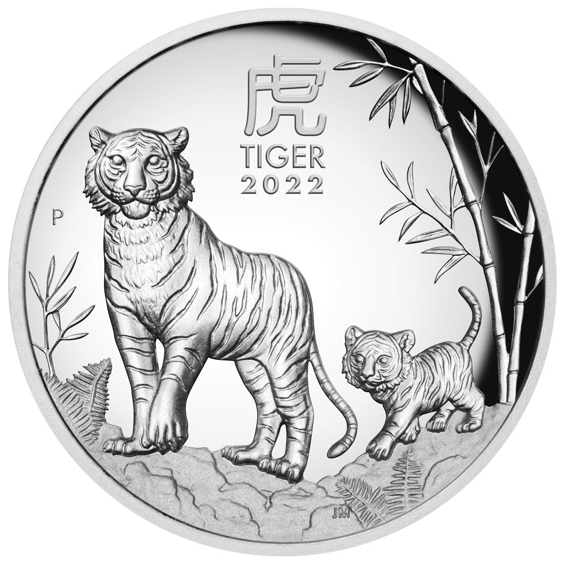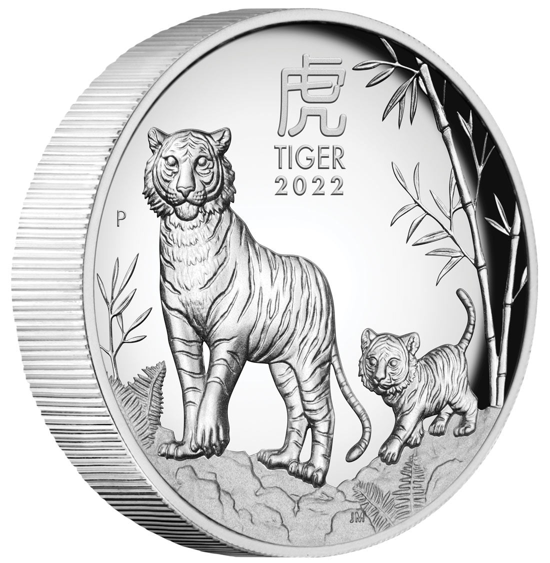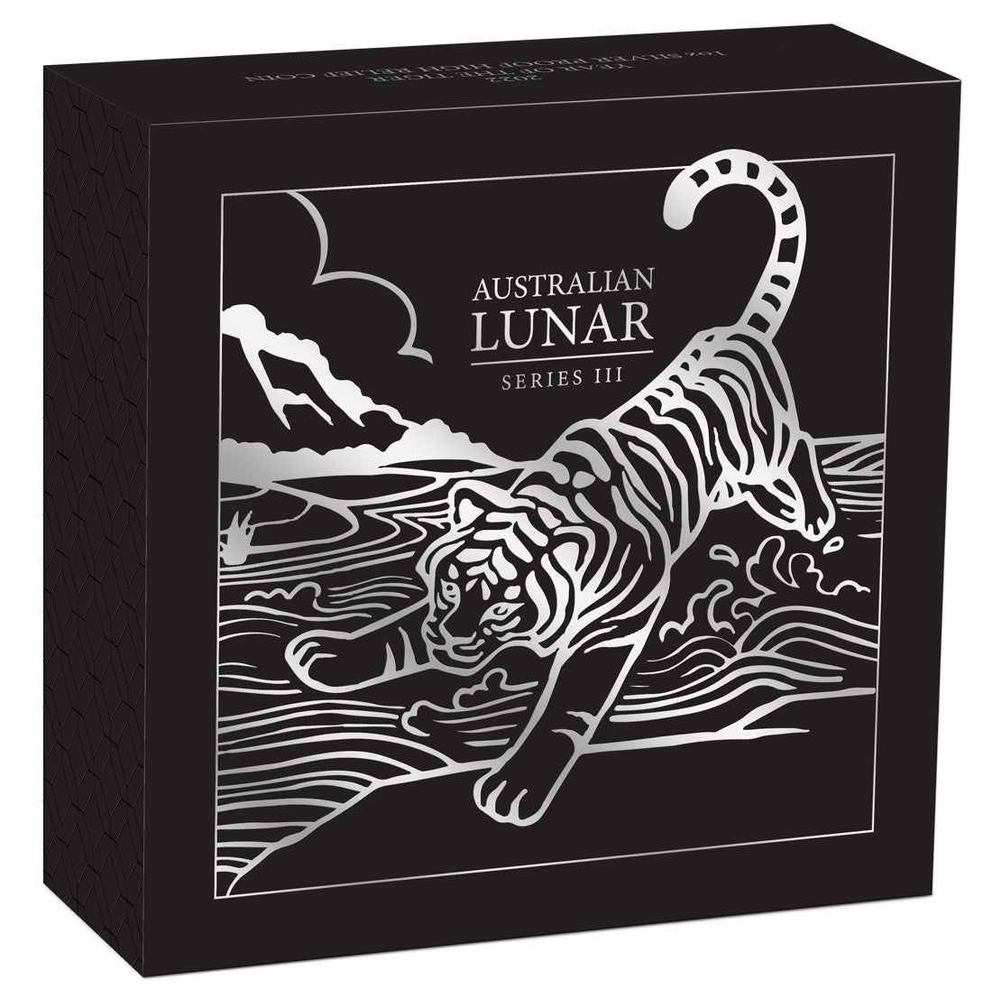 The Perth Mint will release no more than 3,888 of the Australian Lunar Series III 2022 Year of the Tiger 1oz Silver Proof High Relief Coin.