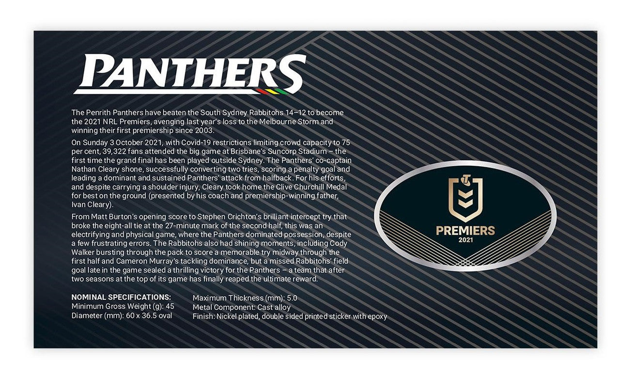 2021 NRL Premiers – Penrith Panthers Stamp and Medallion Cover