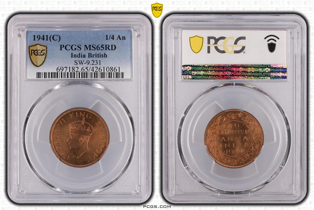 1941 (C) India British 1/4 Anna PCGS MS65RD