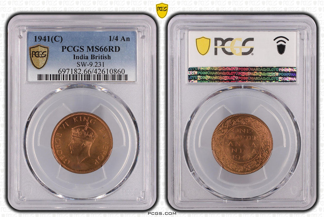 1941 (C) India British 1/4 Anna PCGS MS66RD