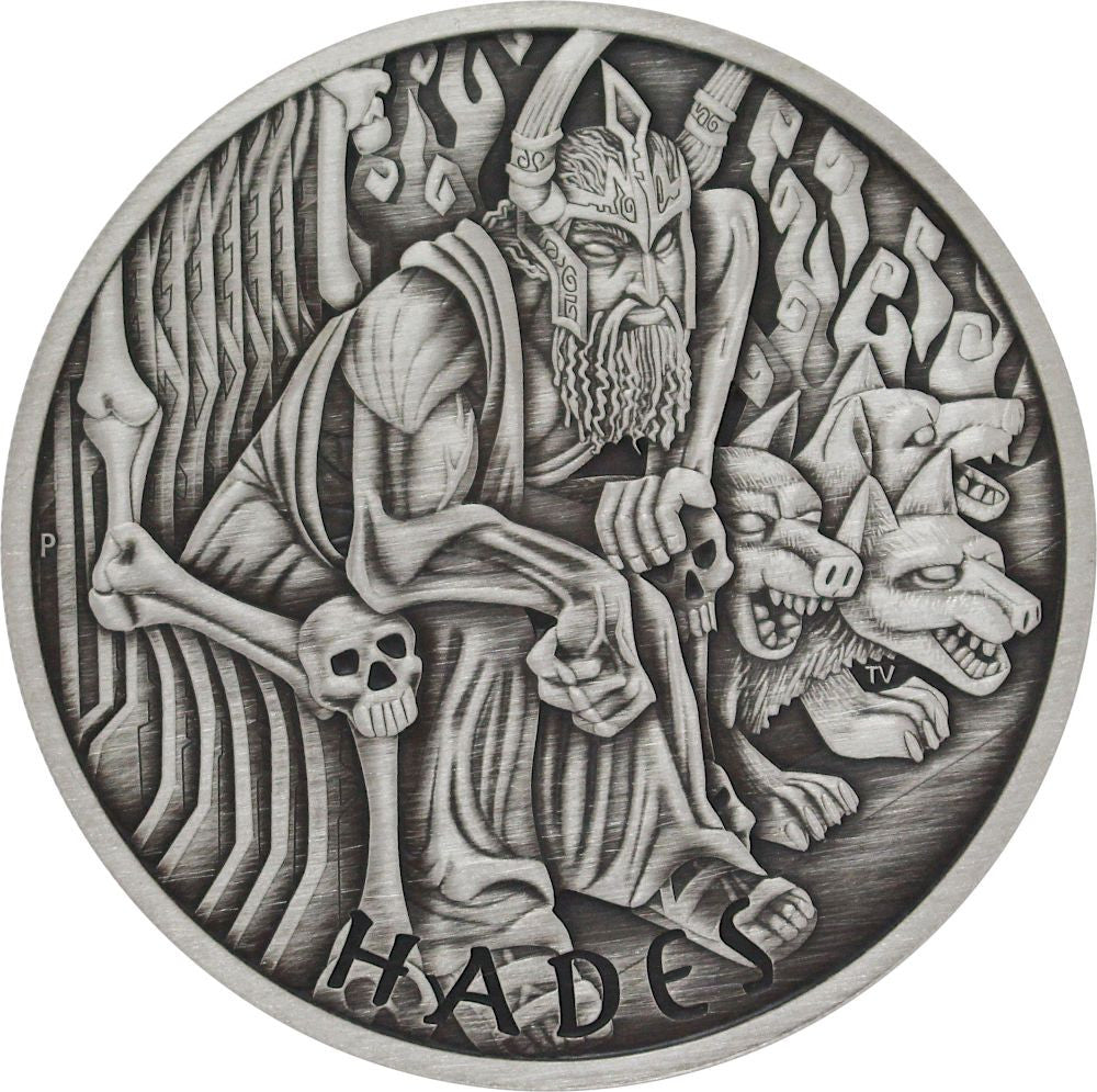 2021 1oz Tuvalu Gods of Olympus - Hades .9999 Silver Antiqued Coin