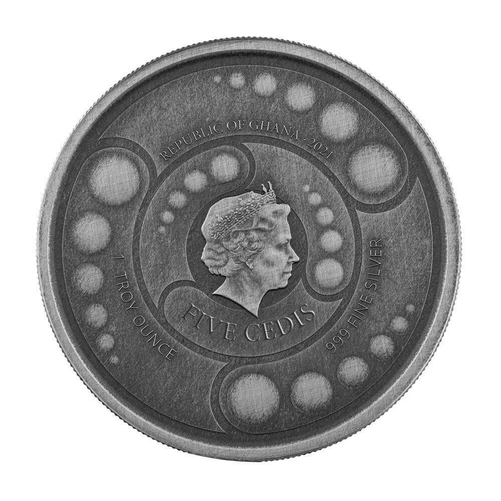 2021 5 Cedis 1oz .999 Antique Silver BU Coin - Ghana Alien