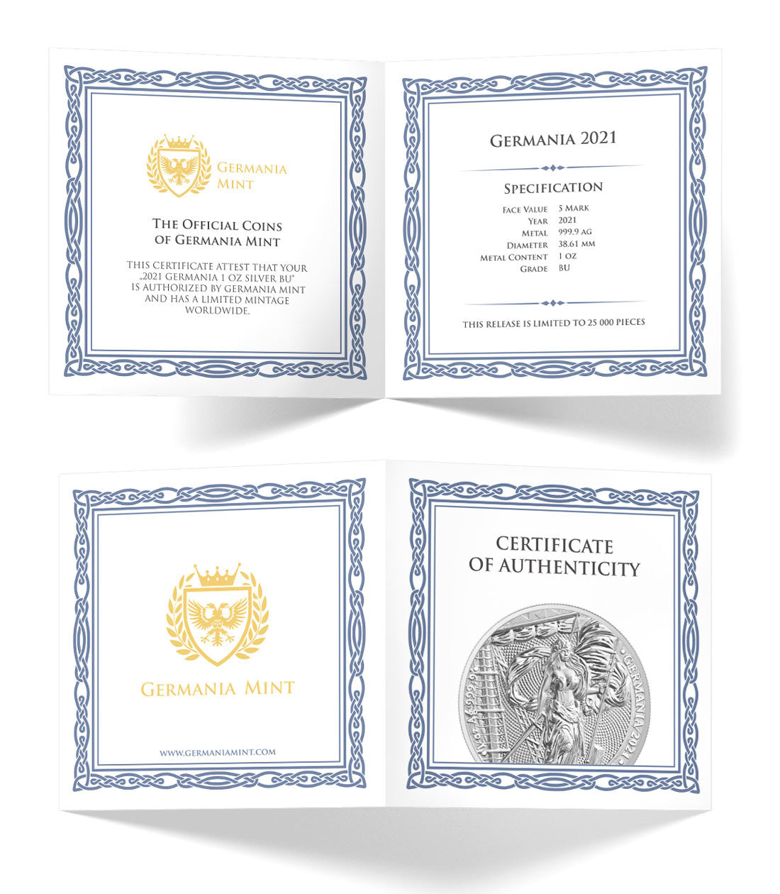 2021 Germania Mint 1oz .9999 Silver BU Coin - Germania