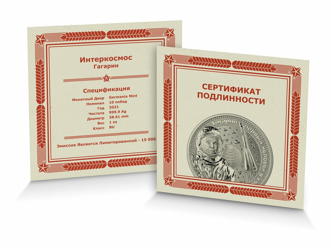 2021 1oz.9999 Silver BU Coin - Interkosmos: Gagarin