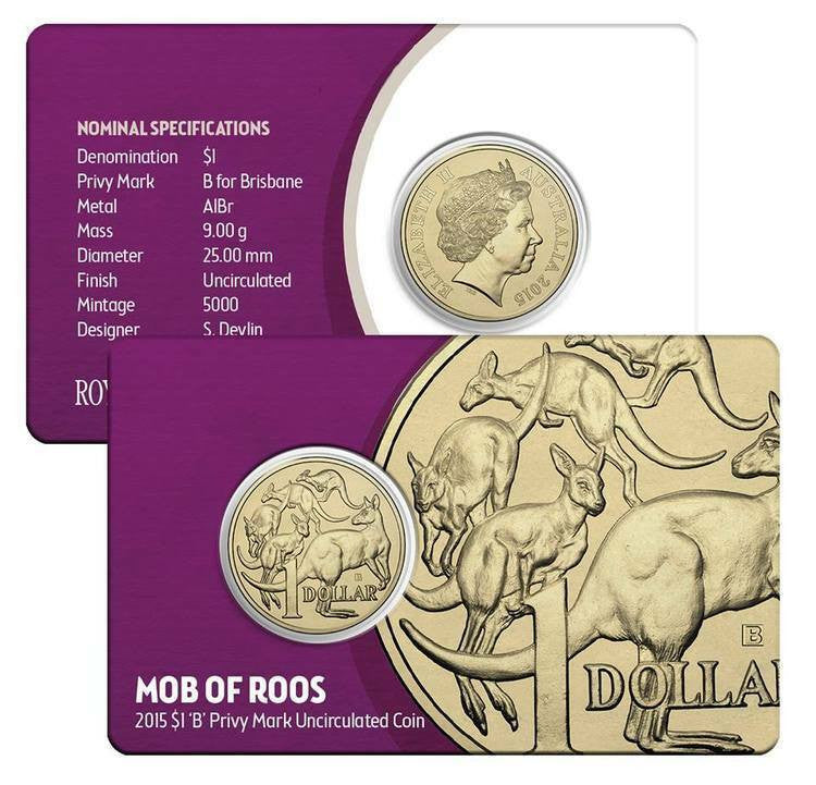 2015 $1 'B' Brisbane Privy Mark Uncirculated Coin - Mob of Roos
