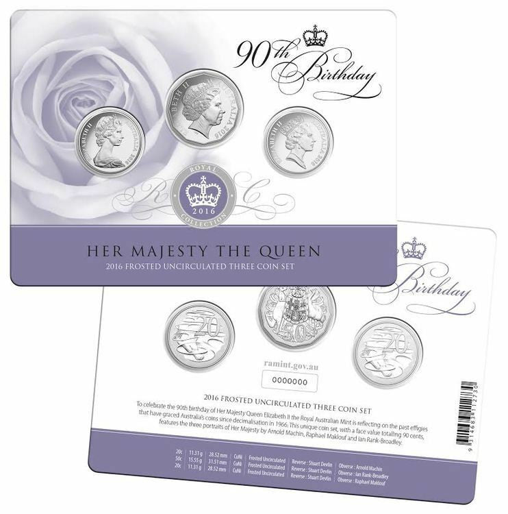 2016 Frosted Uncirculated Three Coin Set -90th Birthday of Her Majesty The Queen
