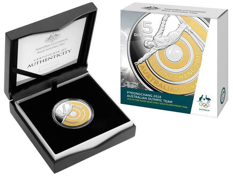 • Coin’s reverse features an Olympic aerial skier mid-flight, richly accentuated with selective gold plating encircling the Australian Olympic Team logo.