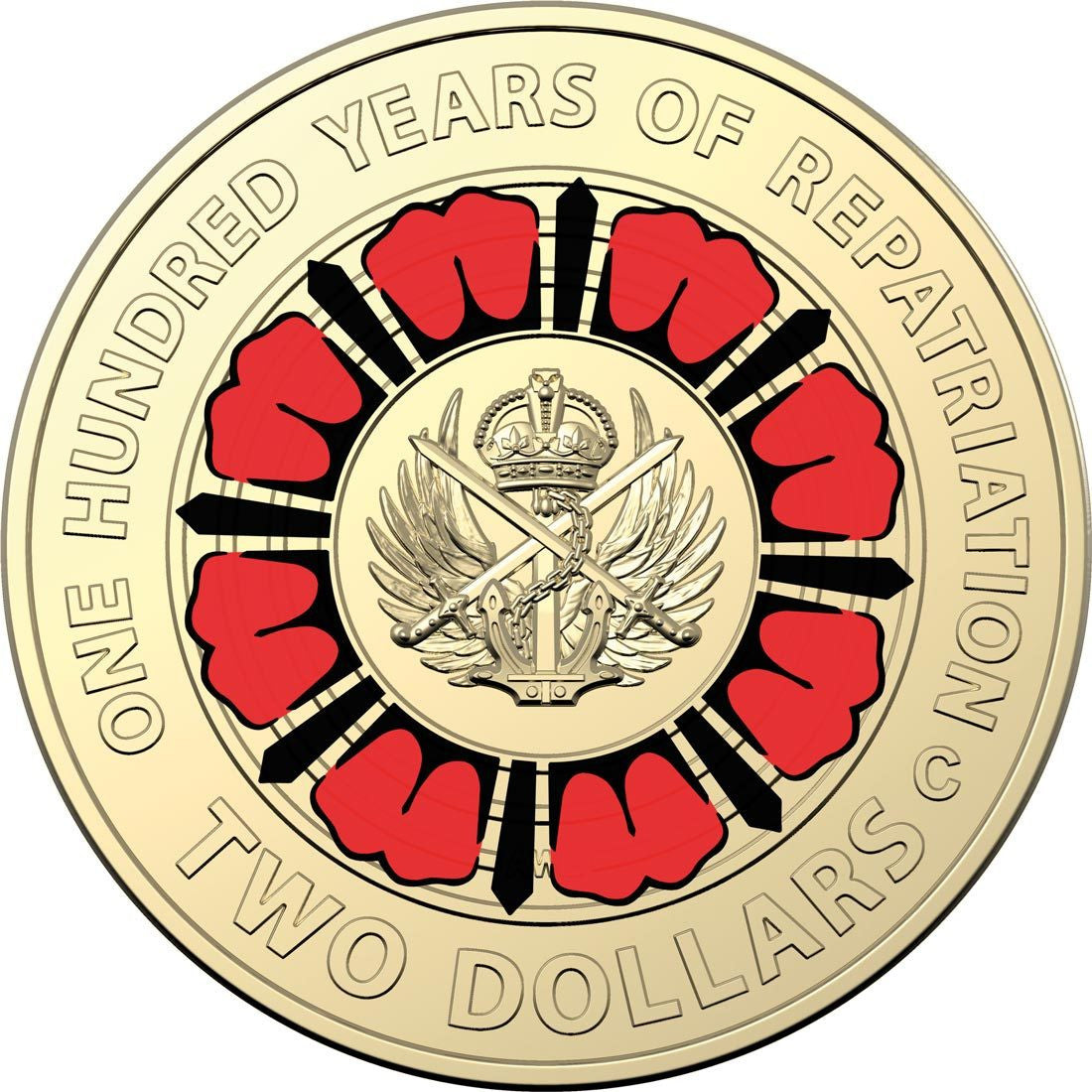 A century later, the role of providing essential support to Australian servicemen and women, and their families, is now carried out by the Department of Veterans’ Affairs. The centenary of the vital task of repatriation is celebrated with this 2019 $2 ‘C’ Mintmark uncirculated coloured coin.