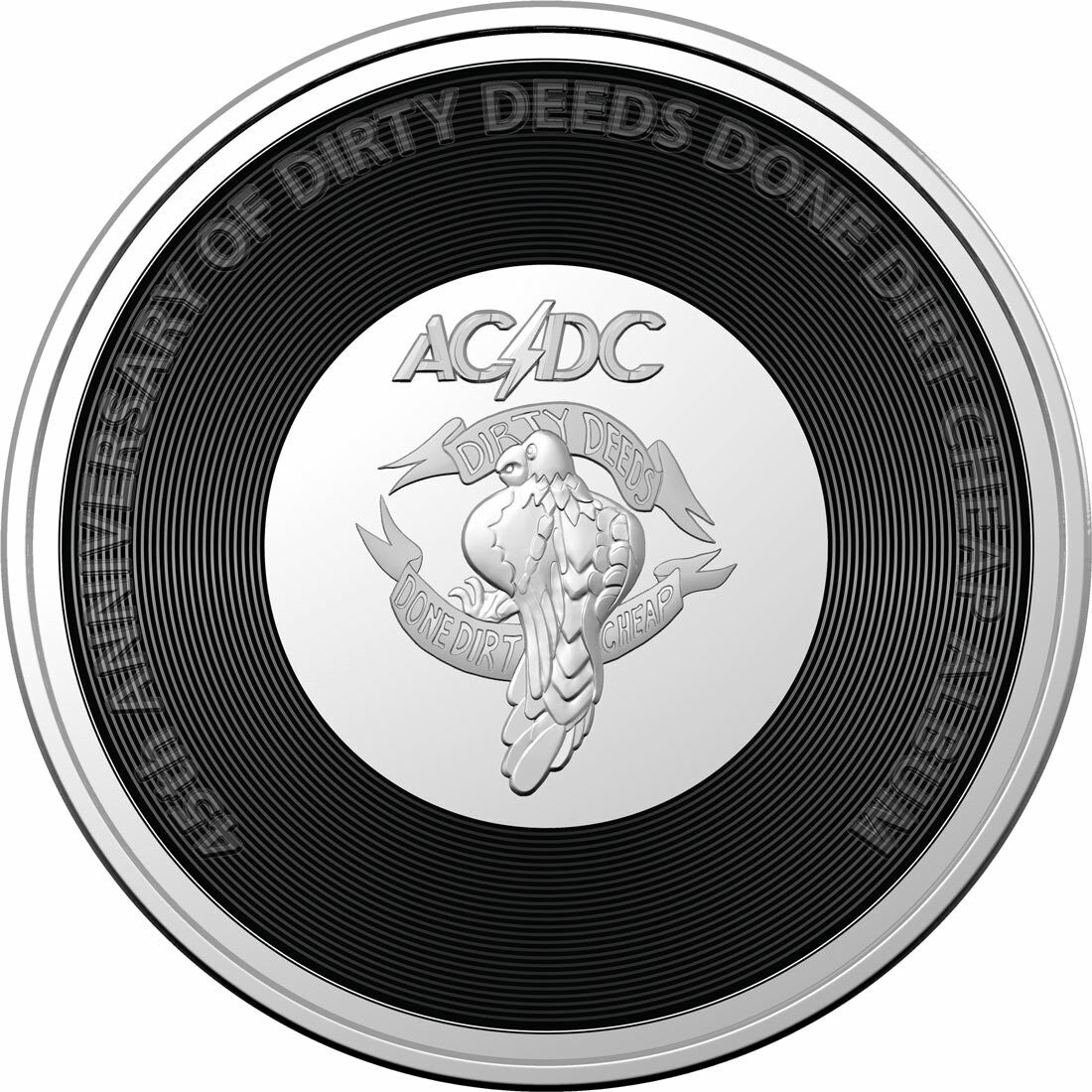 The Royal Australian Mint paid tribute in 2018 to the 45th anniversary of the band bursting onto the music scene with a special edition AC/DC 50 cent coin and a $5 triangular coin shaped like a guitar pick.