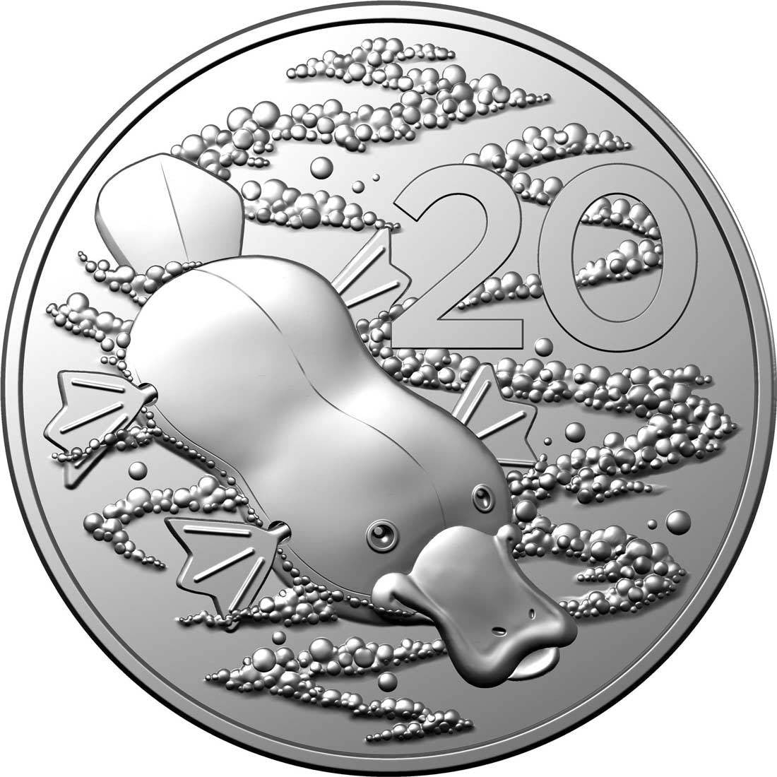 A posable wooden echidna snuggles on the 5c, a cute wind-up platypus swims amongst the bubbles on the 20c, while an adorable mob of cuddly plush kangaroos flop about on the back of the $1 coin.