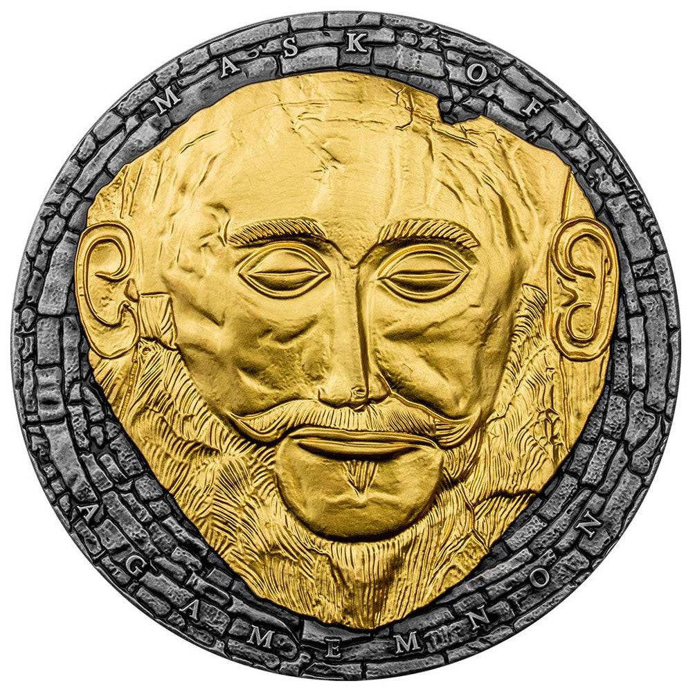 The reverse of the coin presents the amazing Mask of Agamemnon Gold-plating, as the realistic one, with the design of a wall in the background. All around, the inscription: "MASK OF AGAMEMON" - the name of the coin. The obverse depicts the Mask of Agamemnon as seen from the inside and the inscriptions: "3000 FRANCS CFA" - the face value, "REPUBLIQUE DU CAMEROUN" - the country of issue, "2021" - the year of issue and "Ag 999" - the fineness of Silver.