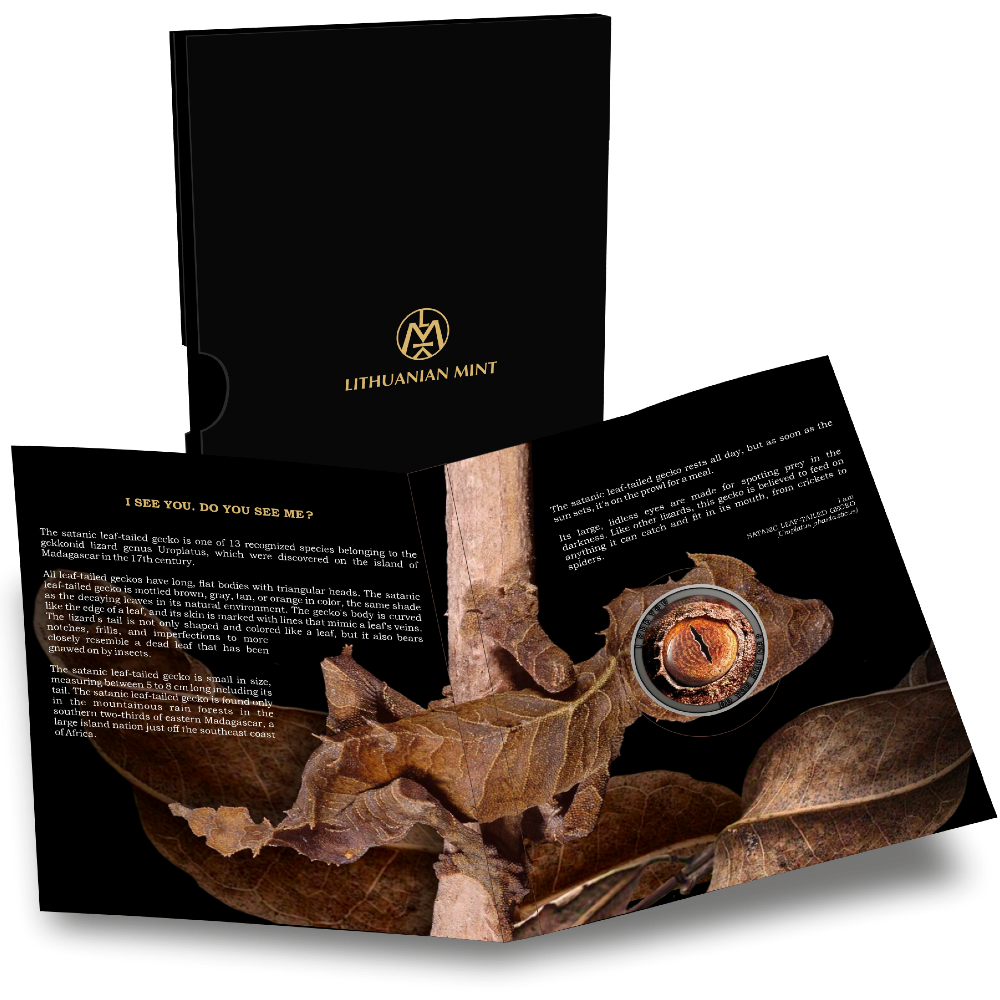 The Lithuanian Mint continues to introduce to the unparalleled beauty of Africa's wildlife and adds a new coin to the Wild Africa series – a coin about the mysterious satanic leaf-tailed gecko (Uroplatus phantasticus)