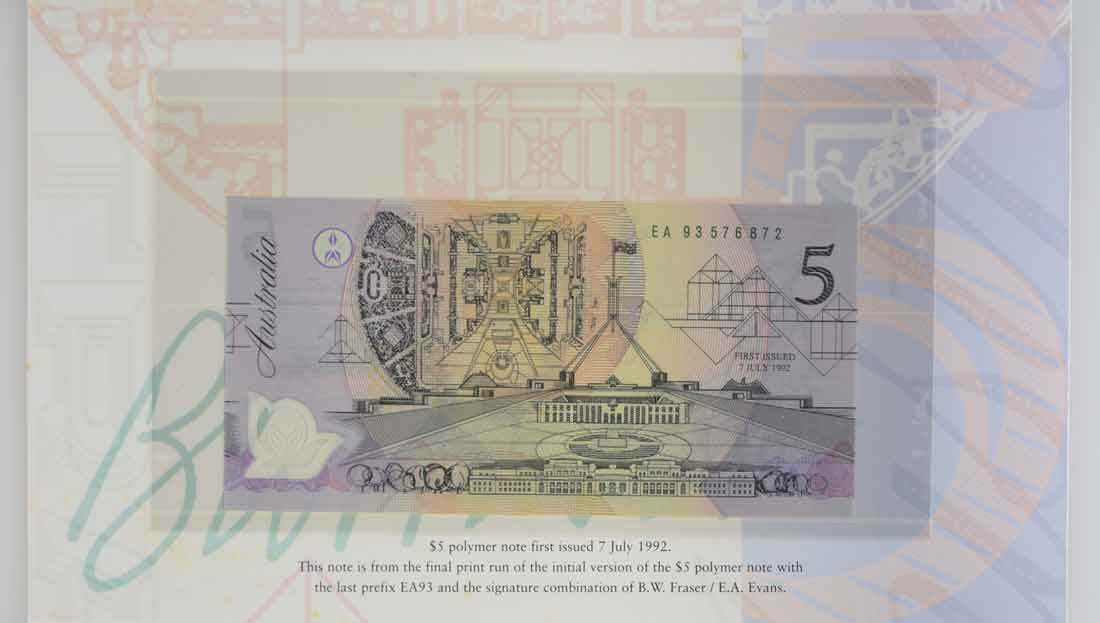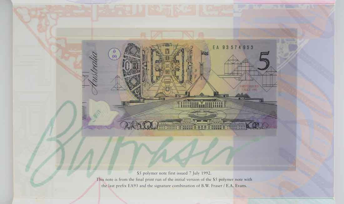 Australia Reserve Bank, Polymer $5 R214 ND 1992 Fraser - Cole PMG 65 EPQ Gem Unc