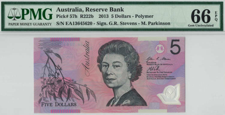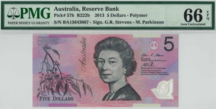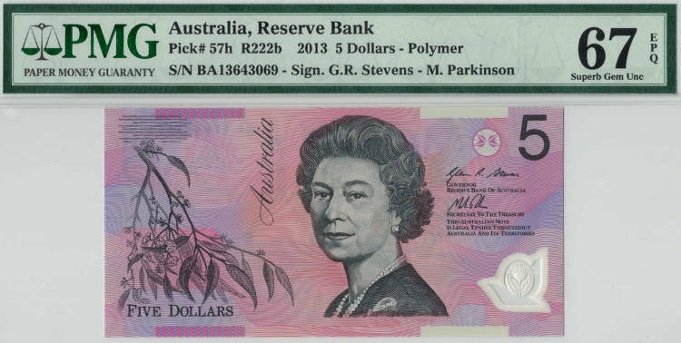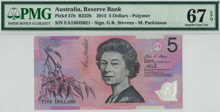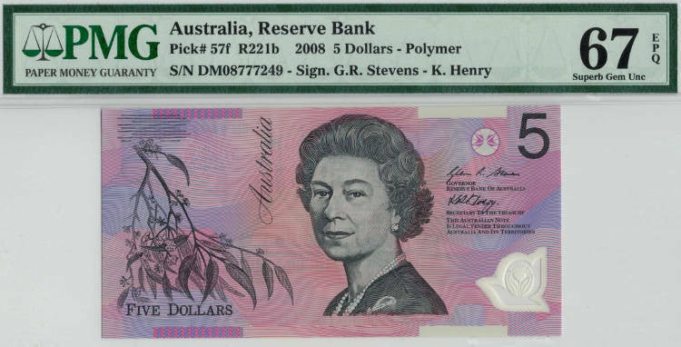 2008 Reserve Bank of Australia $5 R221b Stevens-Henry PMG 67 EPQ Superb Gem Unc