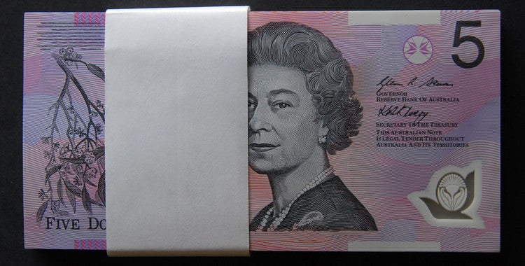 2008 Australian $5 Stevens/Henry | Polymer Banknote | UNC | Bundle of 100 General Prefix