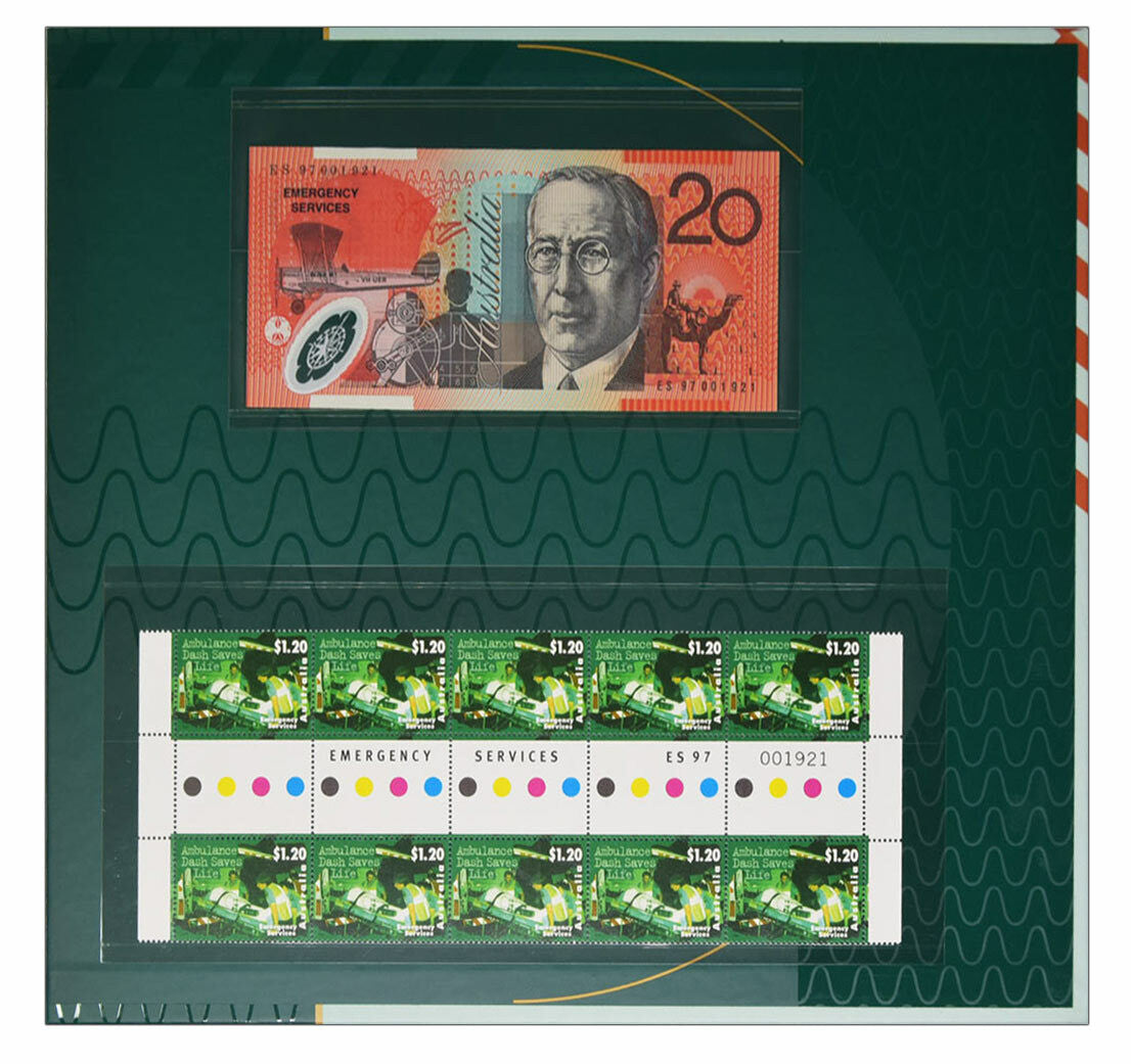1997 Emergency Services $20 Banknote - Pane of 10 Stamps In NPA Folder
