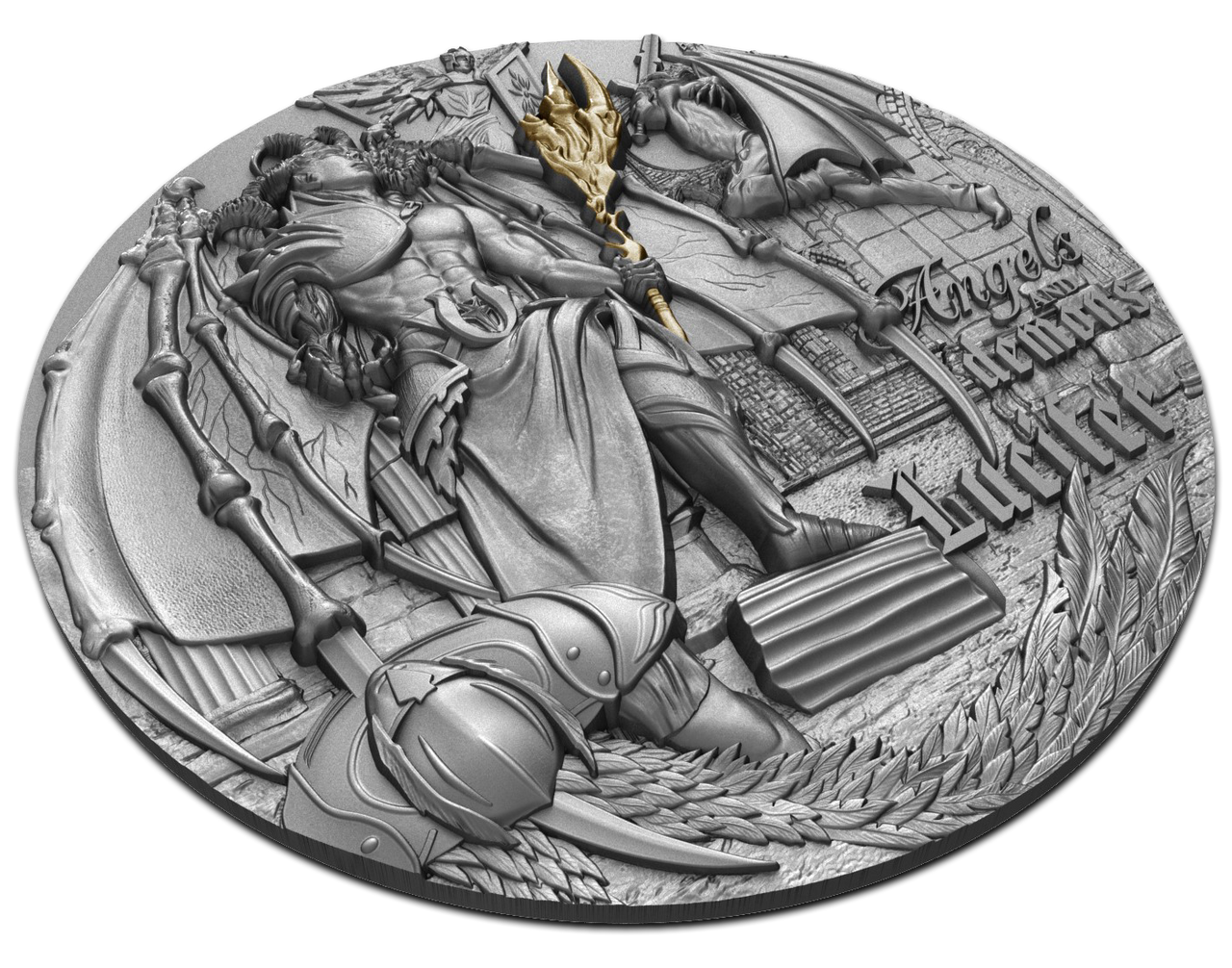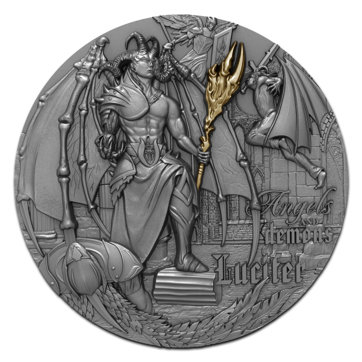 This spectacular 2 oz pure silver coin is the first issue in the new “Angels and Demons” series and features the most important Demon of Christianity, Lucifer, who had once been the most important archangel and close to God, fallen in unfortunately for his opposition to him.