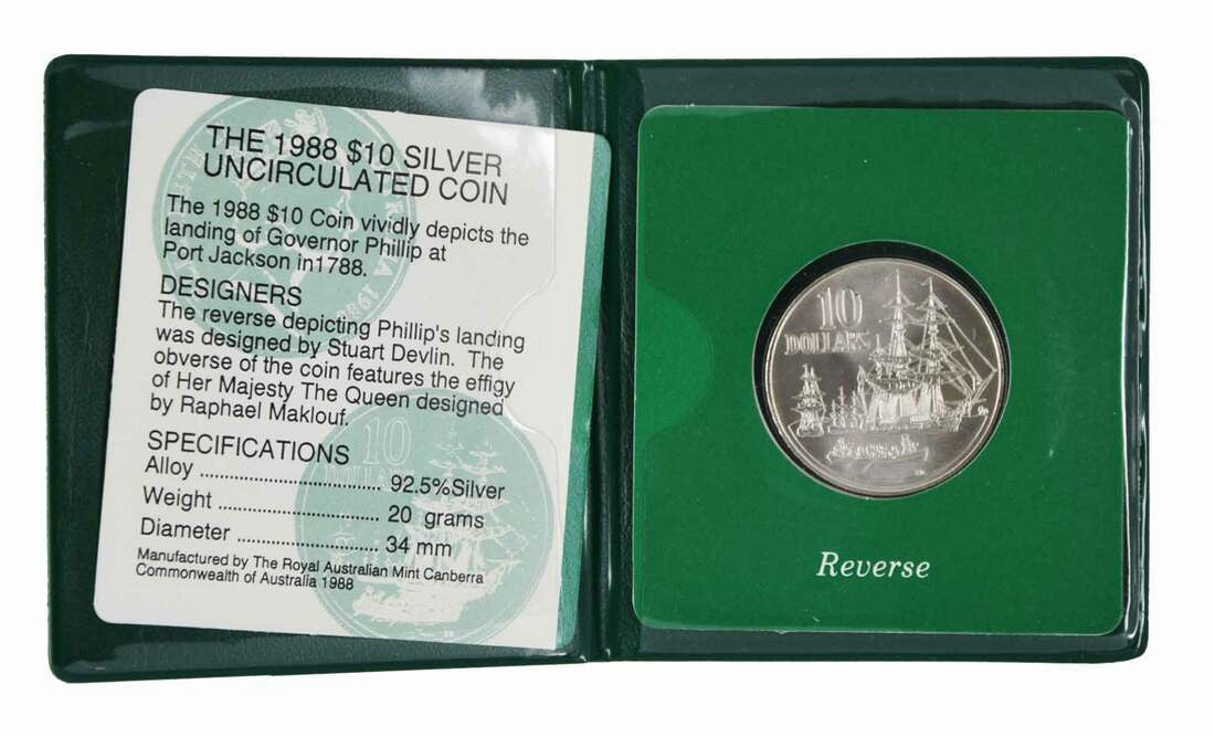 1988 Australia $10 Silver UNC Coin First Fleet Bicentenary