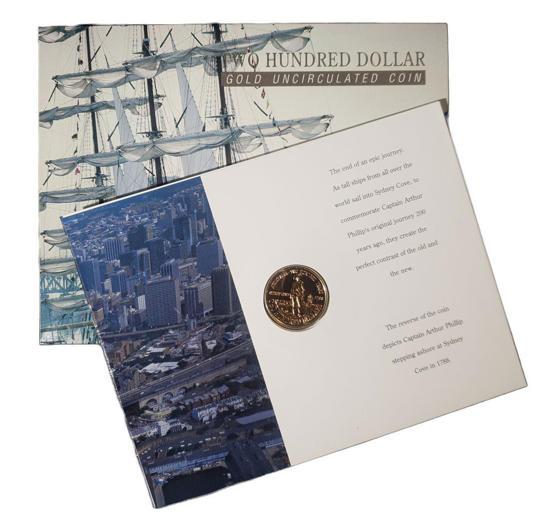 1988 Gold First Fleet Arrival $200 Unc Coin