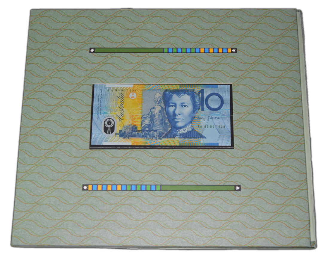 1993 Eminent Women $10 Banknote - Pane of 25 Stamps In NPA Folder Black Serial Numbers.