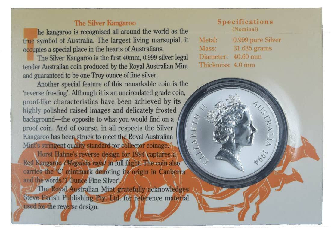 1994 Australia 1oz Silver Kangaroo (In Display Card)