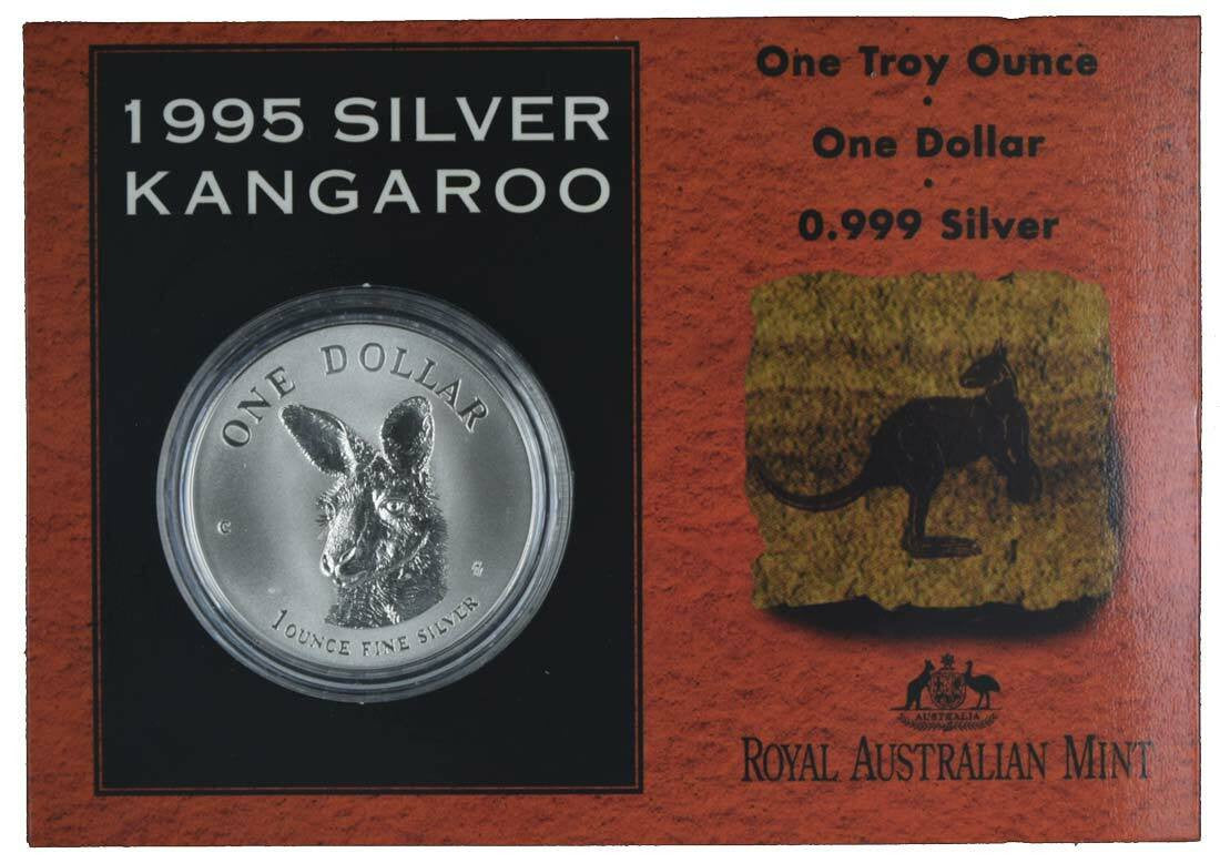 1995 Australia 1 oz Silver Kangaroo (In Display Card)
