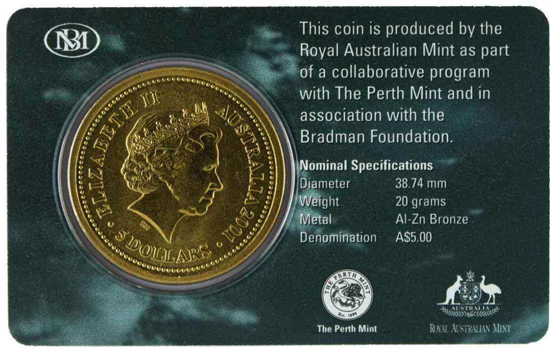 2001 $5 Uncirculated Coin in Card - Sir Donald Bradman