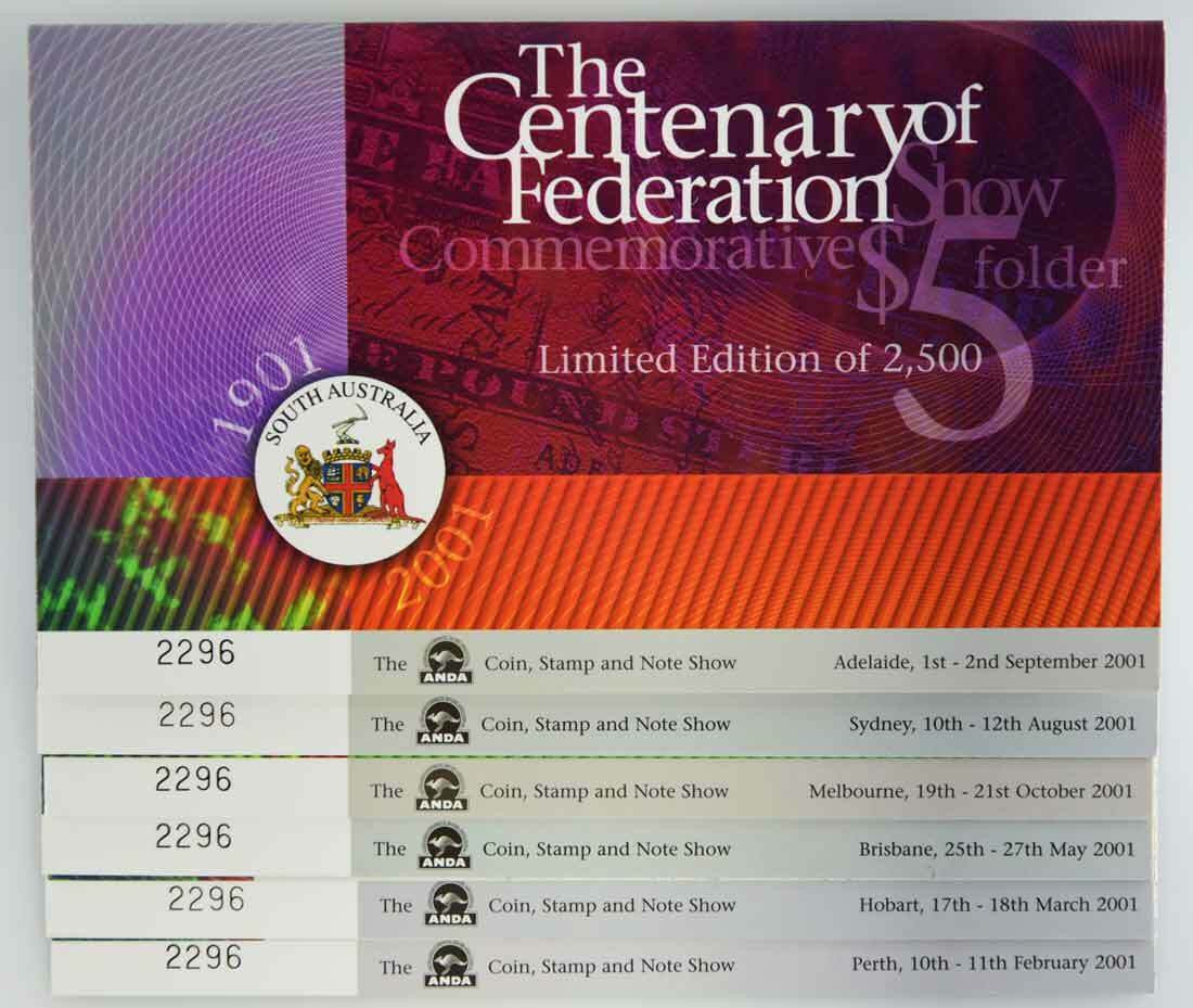 2001 Centenary of Federation $5 Notes Complete Set of Folders ANDA Collectors Issue.