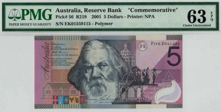 Australia, Reserve Bank-Commemorative, $5 R219 2001 - Polymer PMG63 EPQ Choice Unc