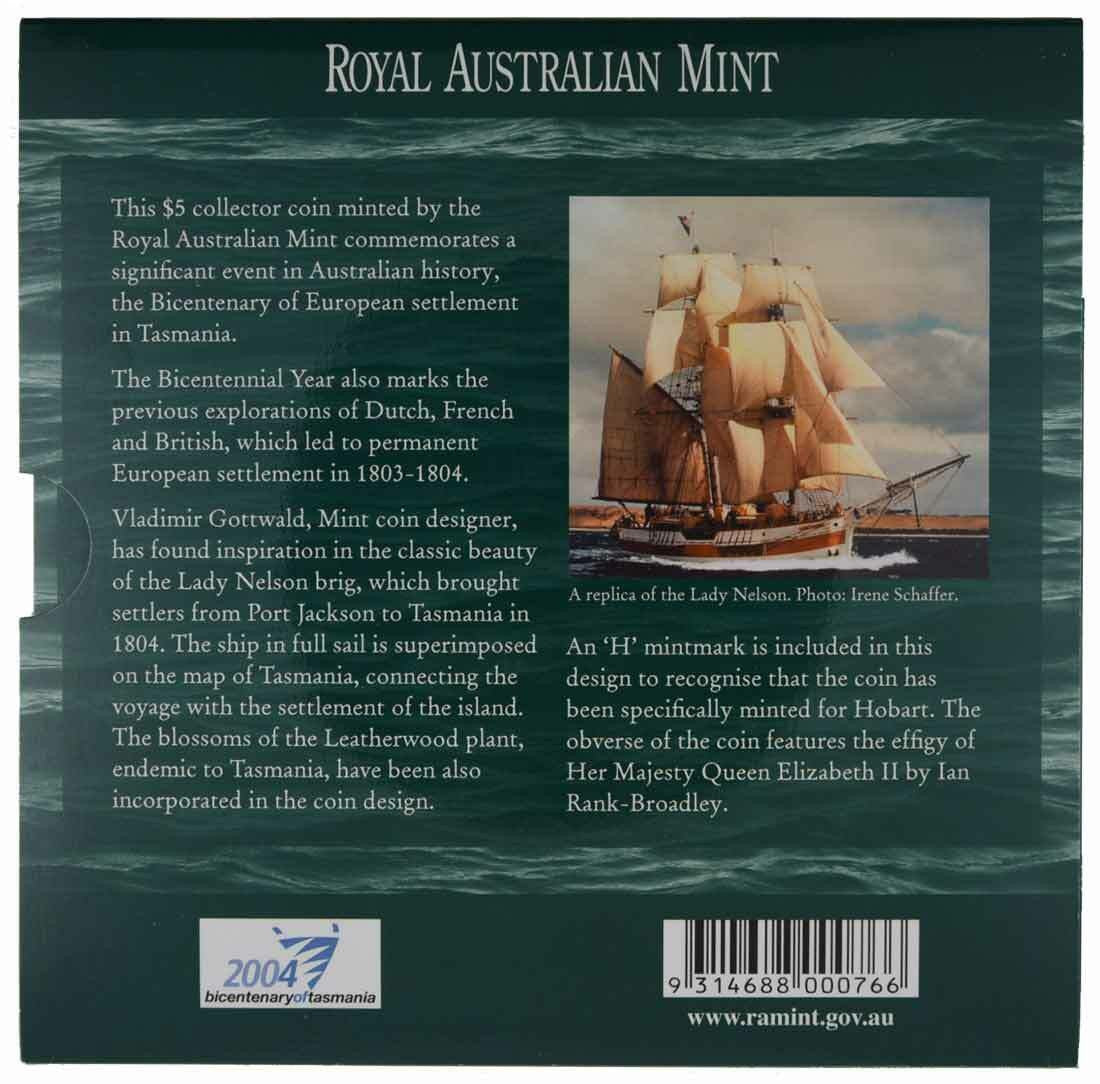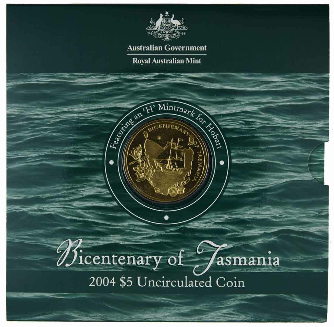 2004 Bicentenary of Tasmania 'H' Mintmark $5 Bronze Uncirculated Coin