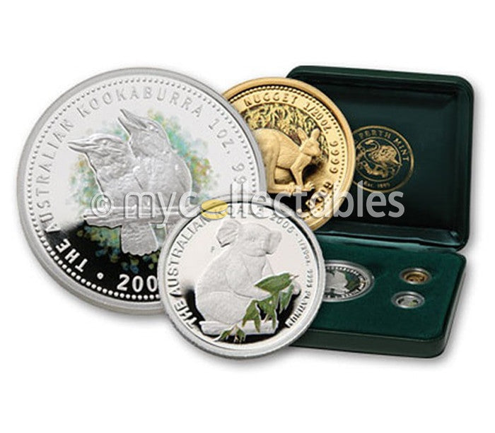 Bringing together the Perth Mint's most popular gold (Kangaroo), silver (Kookaburra) and platinum (Koala) proof coins in one superb presentation case.