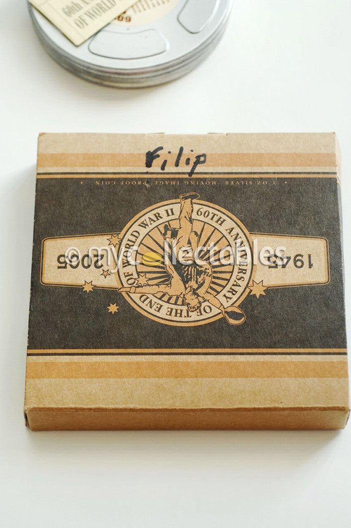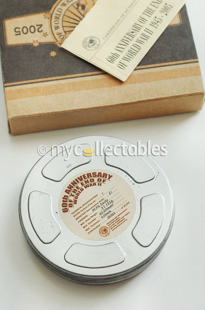 Individual 1oz silver coins are housed in a replica newsreel canister, accompanied by a Certificate of Authenticity.