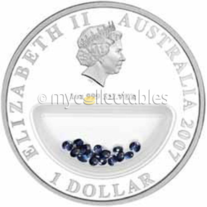 2007 Treasures of Australia Sapphires 1oz Silver Locket Proof Dollar Coin