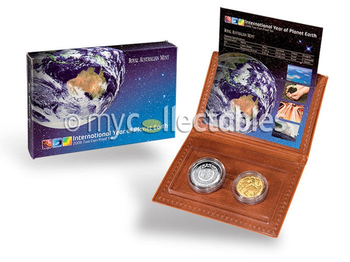 Featuring a special International Year of Planet Earth themed 20 cent piece with a standard design $1 coin, both in proof finish.