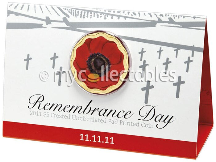 To mark this sombre occasion we have produced a $5 coin with a frosted uncirculated finish. A principle feature of this coin is the coloured red poppy on the reverse and on both the reverse and the obverse a slightly scalloped design that mimics the delicate petals of this iconic flower. The coin is presented in a blister and housed in a Remembrance Day themed card and makes a timeless memento to mark this rare occurrence.