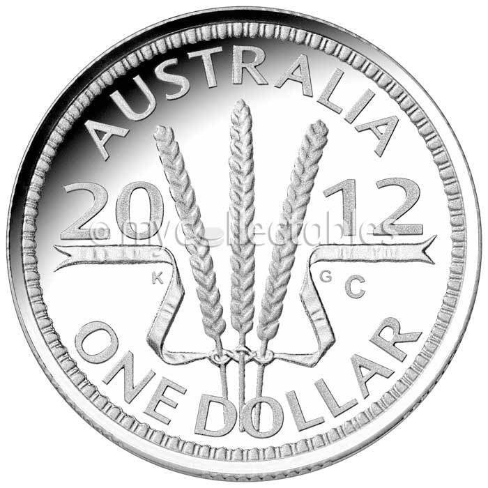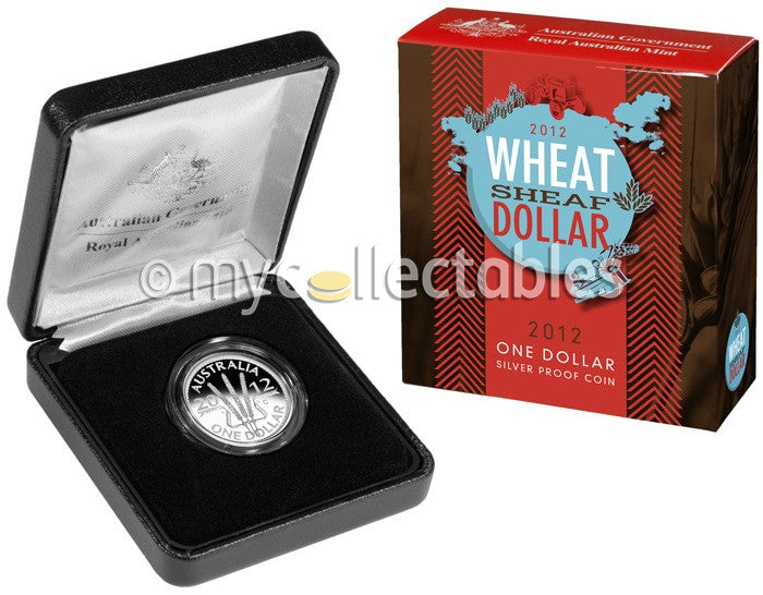 The 2012 $1 Silver Proof Wheat Sheaf Coin is stamped with the Canberra mintmark and then placed into a clear coin capsule housed in a black leatherette