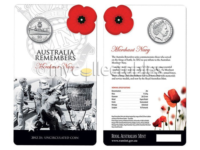 2012 20c Uncirculated Coin - Australia Remembers - Merchant Navy