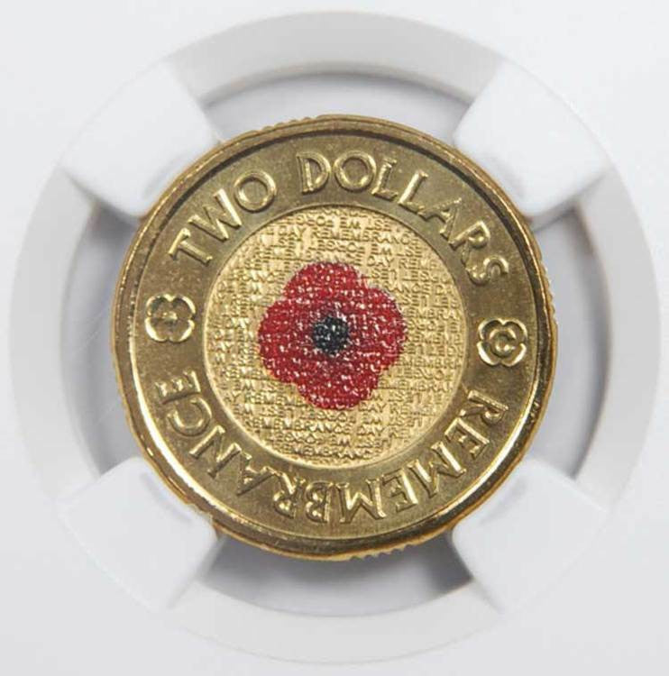 2012 "C" Australian $2 Remembrance Day Poppy - Colorized NGC MS69 PL