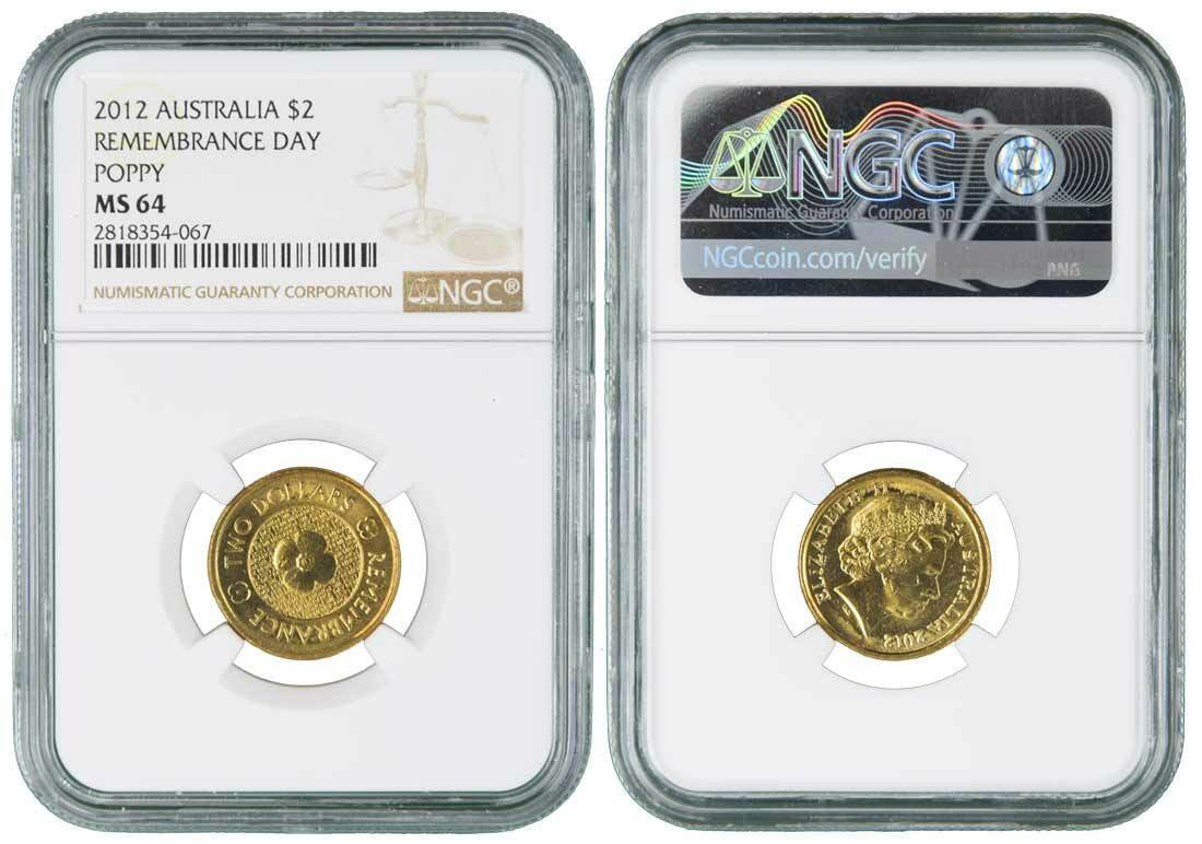 2012 Australian $2 Remembrance Day Poppy NGC MS64