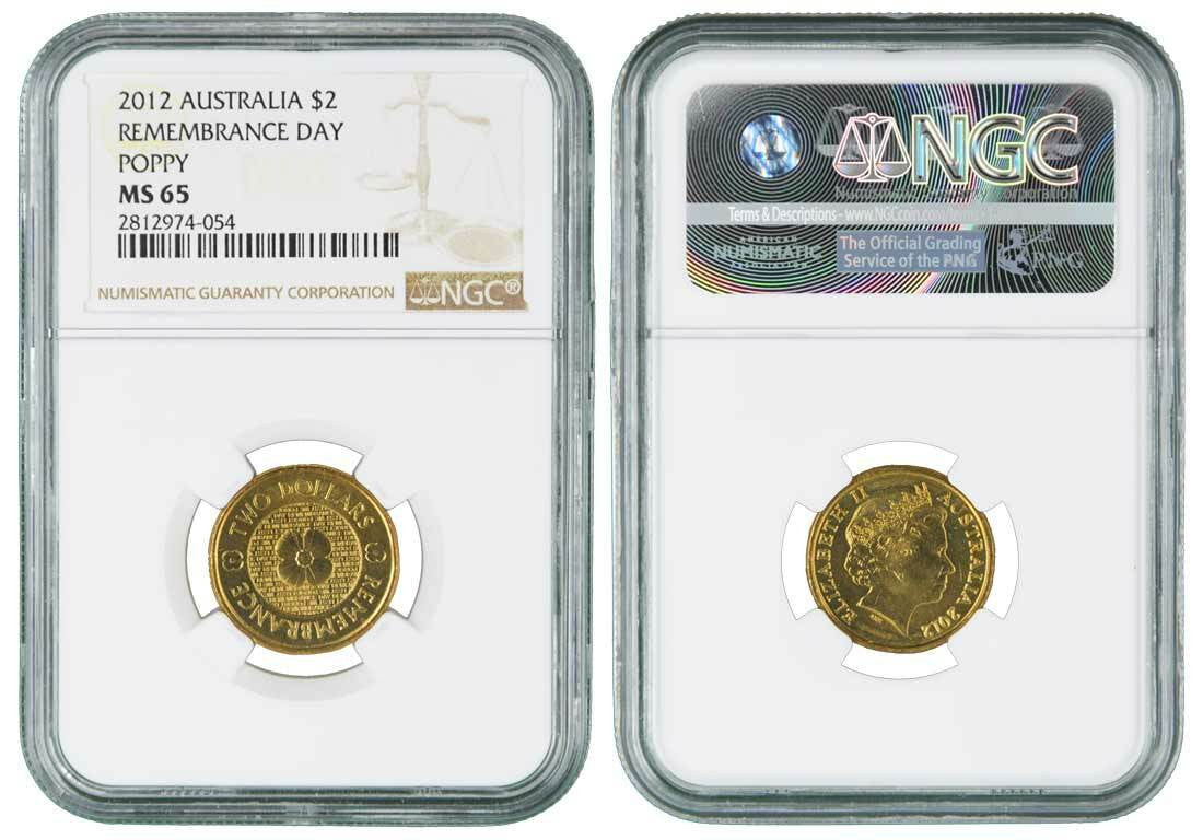 2012 Australian $2 Remembrance Day Poppy NGC MS65