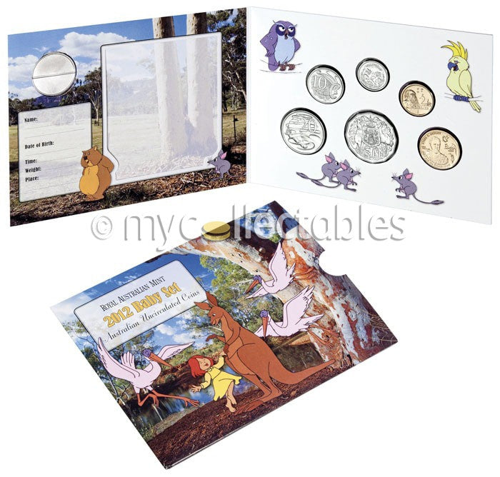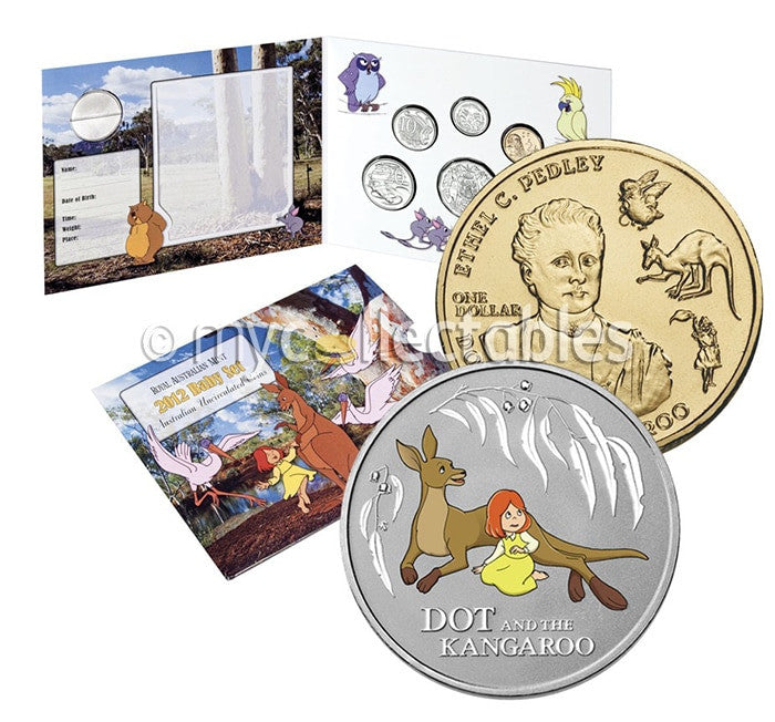 All six 2012 uncirculated coins, a special colour printed medallion and a one dollar coin featuring Dot and the Kangaroo and her creator Ethel C Pedley will make the uncirculated 2012 Baby Set a popular choice with new parents, gift buyers and collectors.