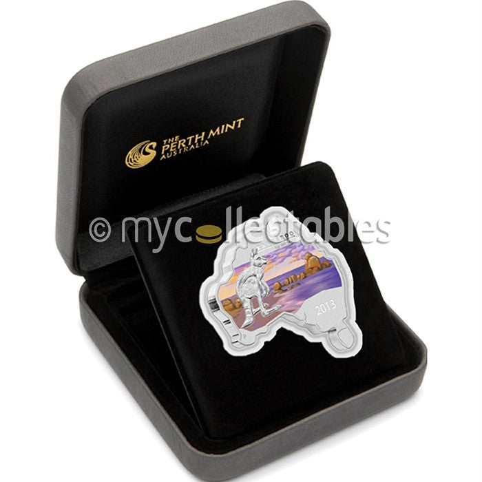 The Perth Mint will release no more than 6,000 of these Australian Map Shaped – Kangaroo 2013 1oz Silver Coins.