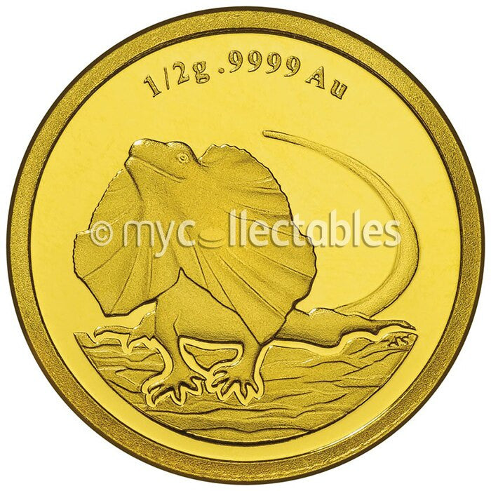 This 0.5 gram gold coin offers an inexpensive entry into the gold market and displays an artistic impression of the Frilled Neck Lizard positioned on a rock sunning itself. This 99.99% gold proof coin is 11.15 mm in diameter and one of the smallest coins the Royal Australian Mint has produced. This coin is presented in a stylish black case with an outer box featuring an Australian outback design and a numbered Certificate of Authenticity. This coin is available for sale on 4 February 2013 and has a limited mintage of 7500.